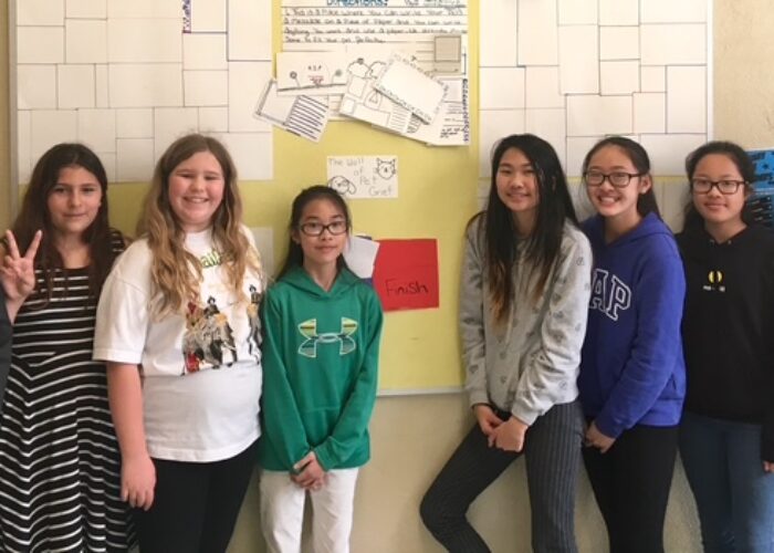 Middle school students created an interactive display to teach 1st graders about cat overpopulation. Kids learned that one unspayed female and her offspring could produce thousands of cats that need homes.